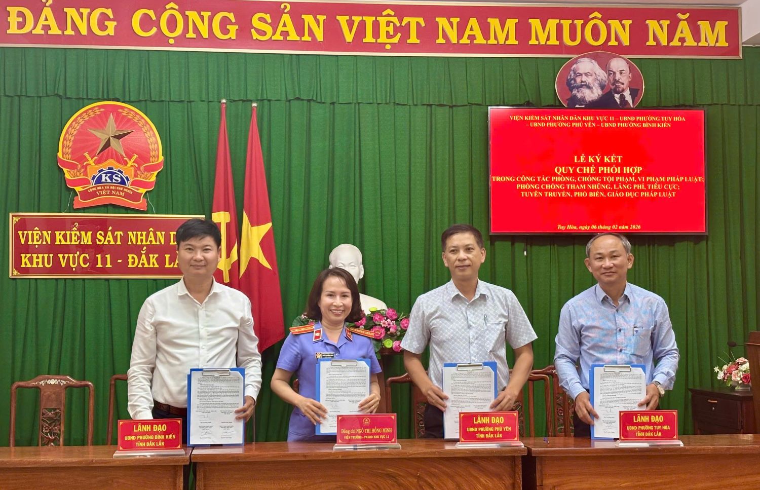 Chiều 06/02/2026, VKSND khu vực 11, tỉnh Đắk Lắk đã chủ trì tổ chức Lễ ký kết quy chế phối hợp trong công tác phòng, chống tội phạm, vi phạm pháp luật; phòng, chống tham nhũng, lãng phí, tiêu cực với...