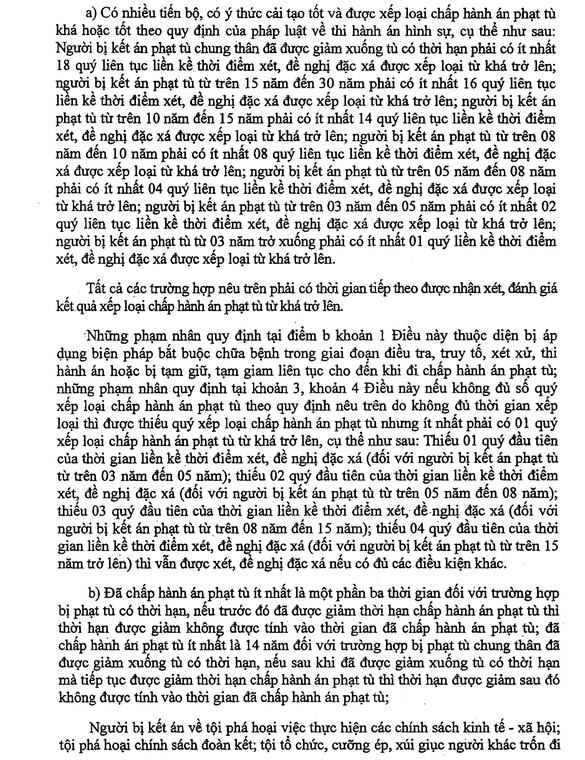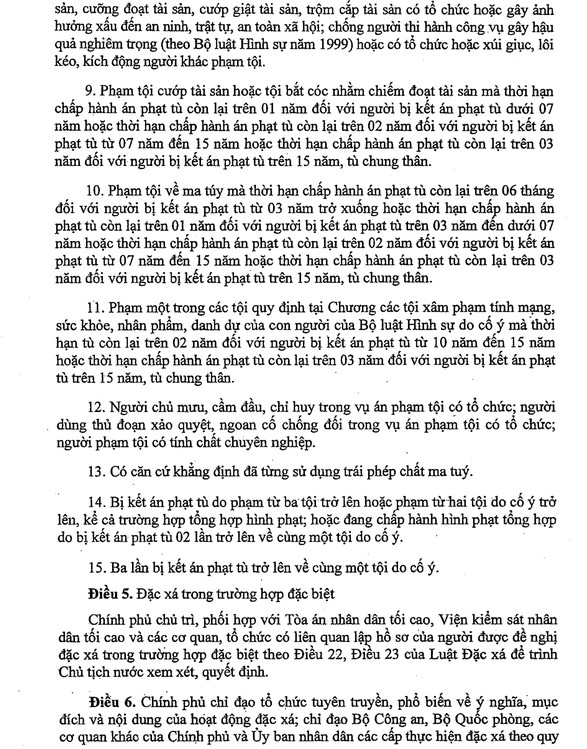 6. Thời hạn chấp hành án phạt tù còn lại trên 8 năm đối với người được quy định tại khoản 1, khoản 2 Điều 3; trên 10 năm đối với người được quy định tại khoản 3, khoản 4 Điều 3 Quyết định này.