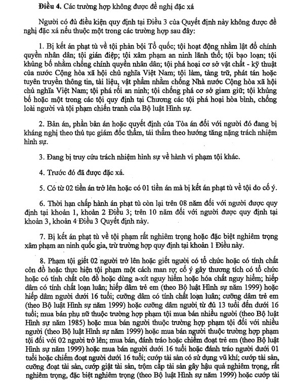 4. Trước đó đã được đặc xá.